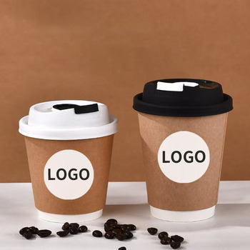 カスタム使い捨て二重壁生分解性コーヒー紙コップ12オンス飲用ホットティーミルククラフト紙コップロゴ包装付き